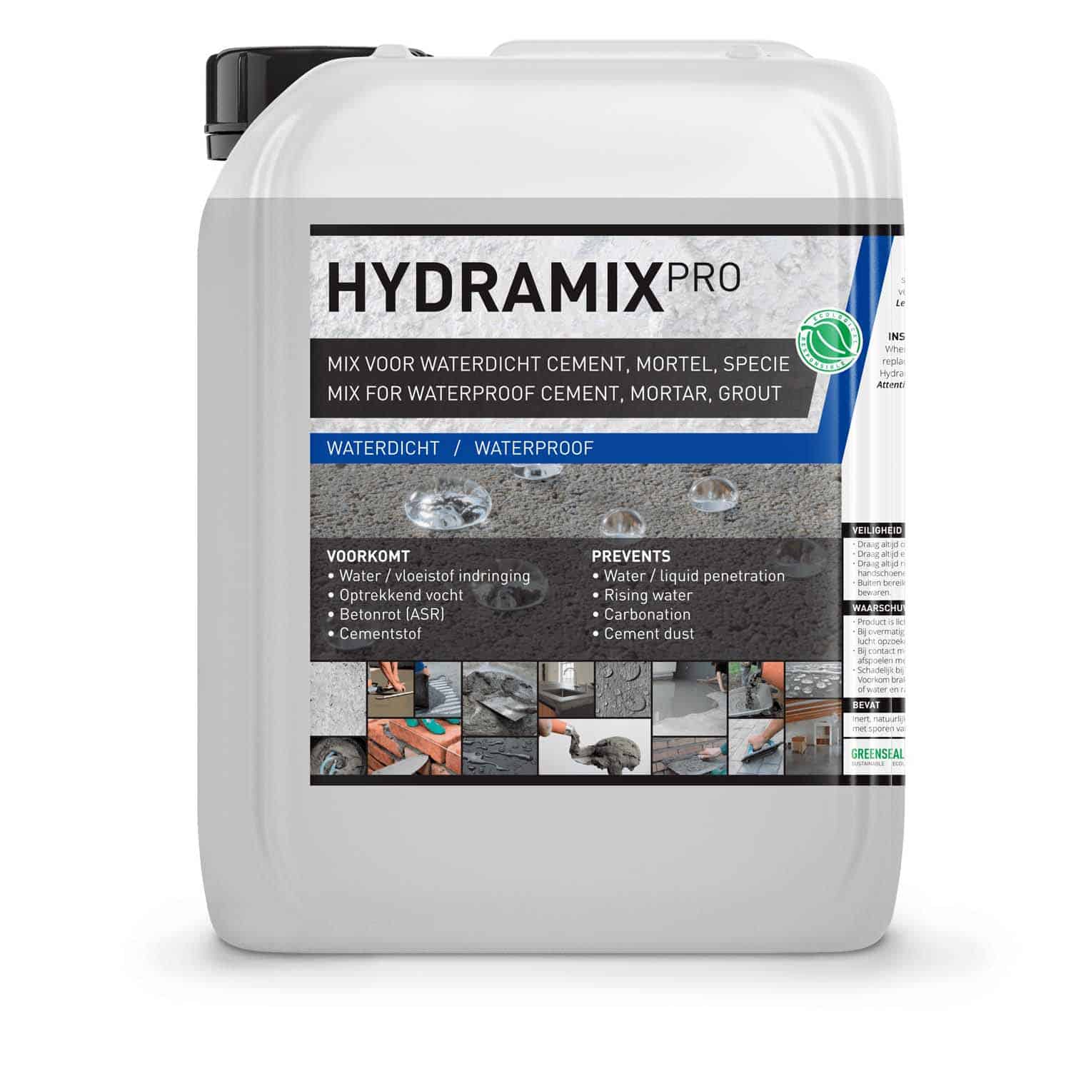 Hydramix Pro, een toevoeging voor cement en mortel. Maakt cement en beton waterdicht tijdens het uitharden. Hydramix is zeer geschikt voor dekvloeren, metselwerk en voegen.